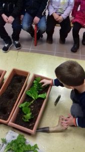Les enfants de PS et de MS ont réalisé de nouvelles plantations : une autre espèce de salade d’hiver….de « la