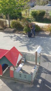 Afin de préparer l’école pour la rentrée, des parents bénévoles sont venus nettoyer la cour, régler la hauteur des tables,