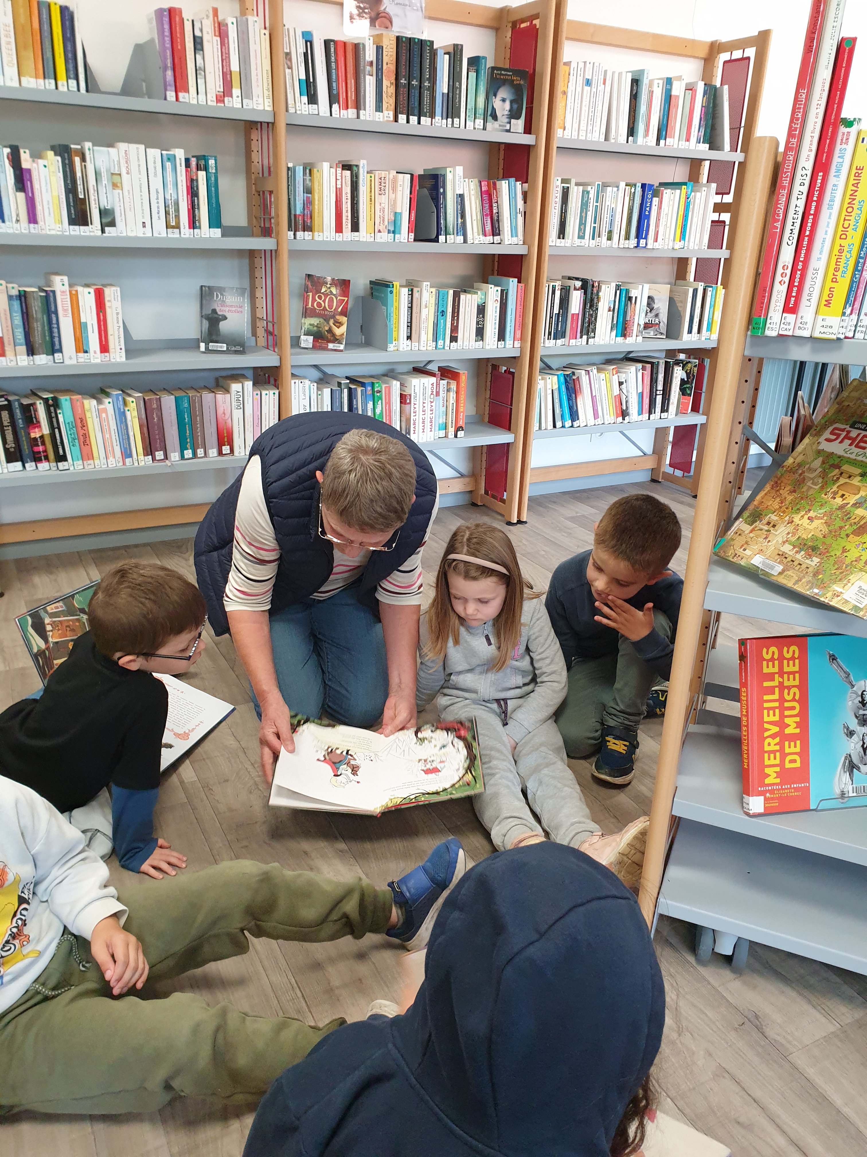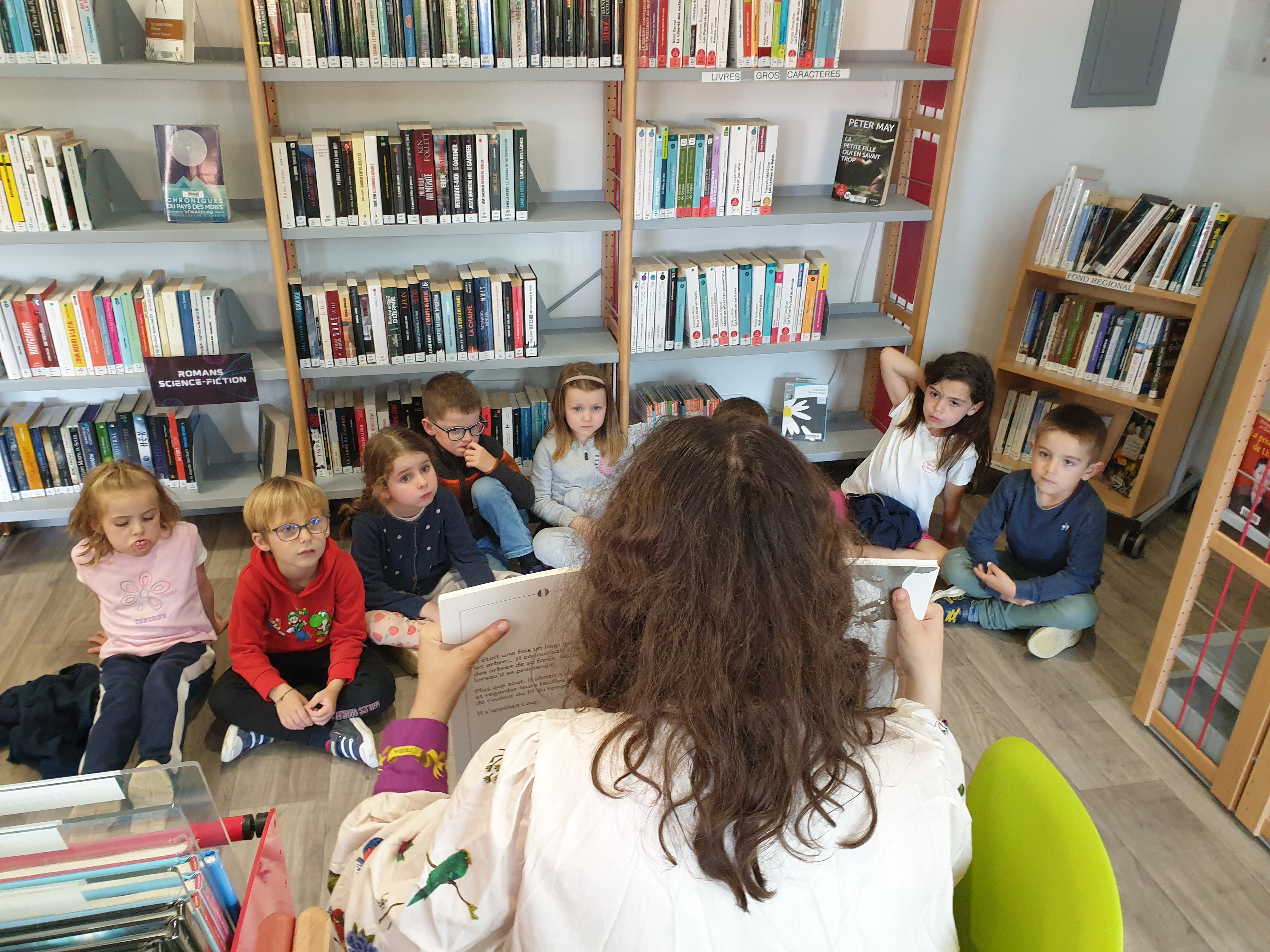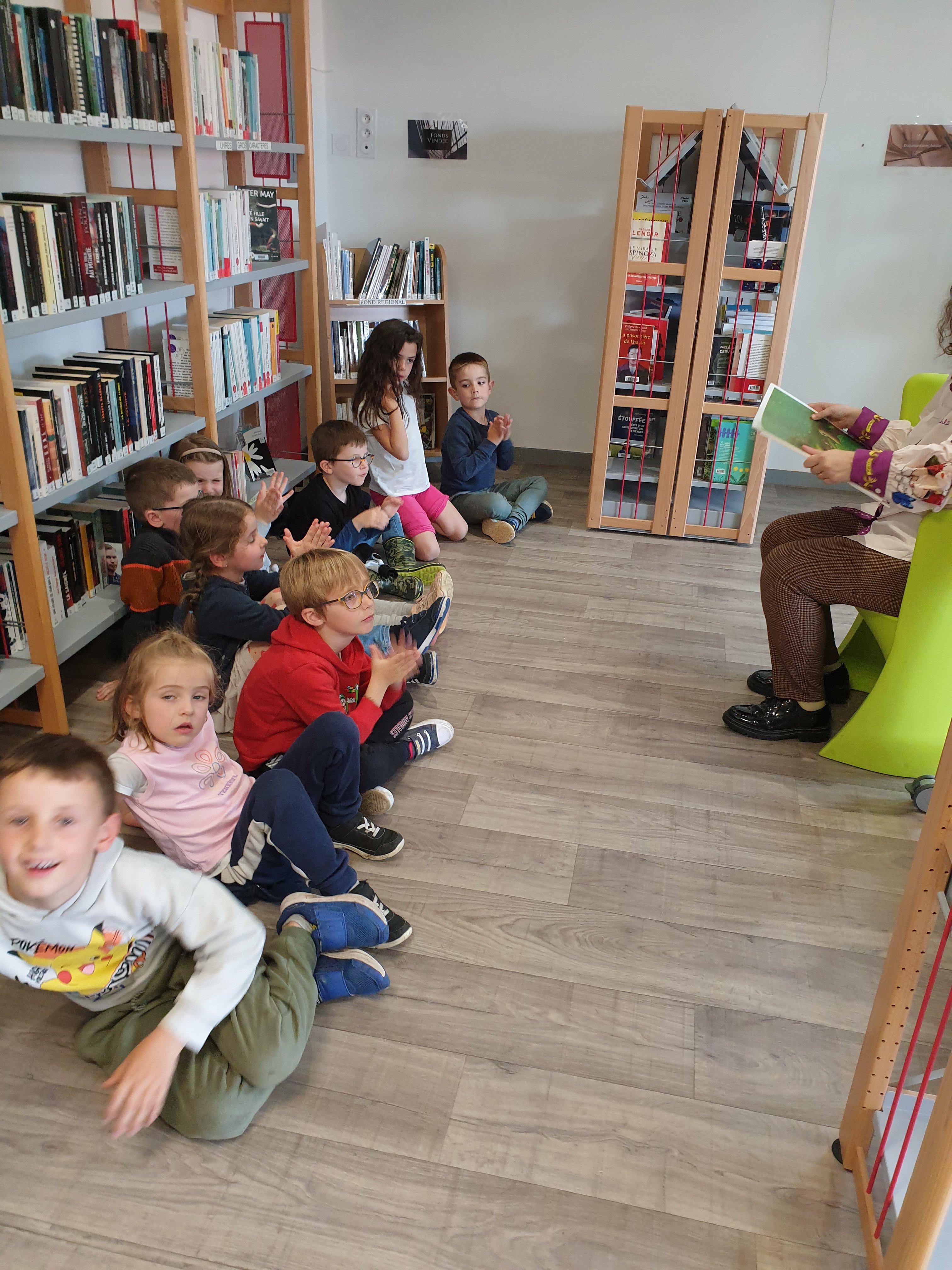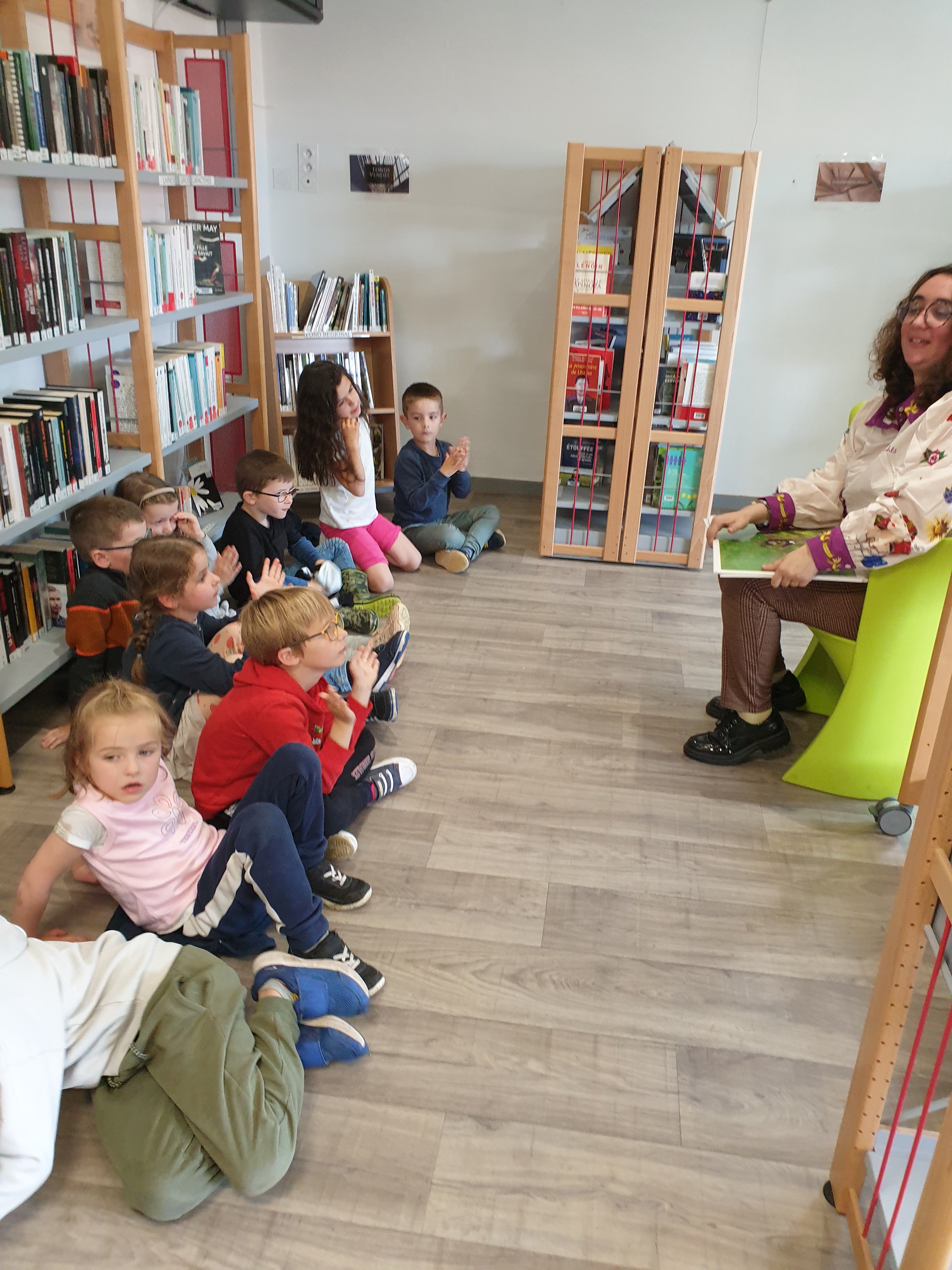Un grand merci à Manon Parveau et aux bénévoles qui nous ont accueillis tout au long de l’année. Pour cette dernière séance, les GS ont eu droit à une lecture d’histoire en kamishibaï, et les CM2 à un enquête à faire dans la médiathèque pour résoudre un message mystère.