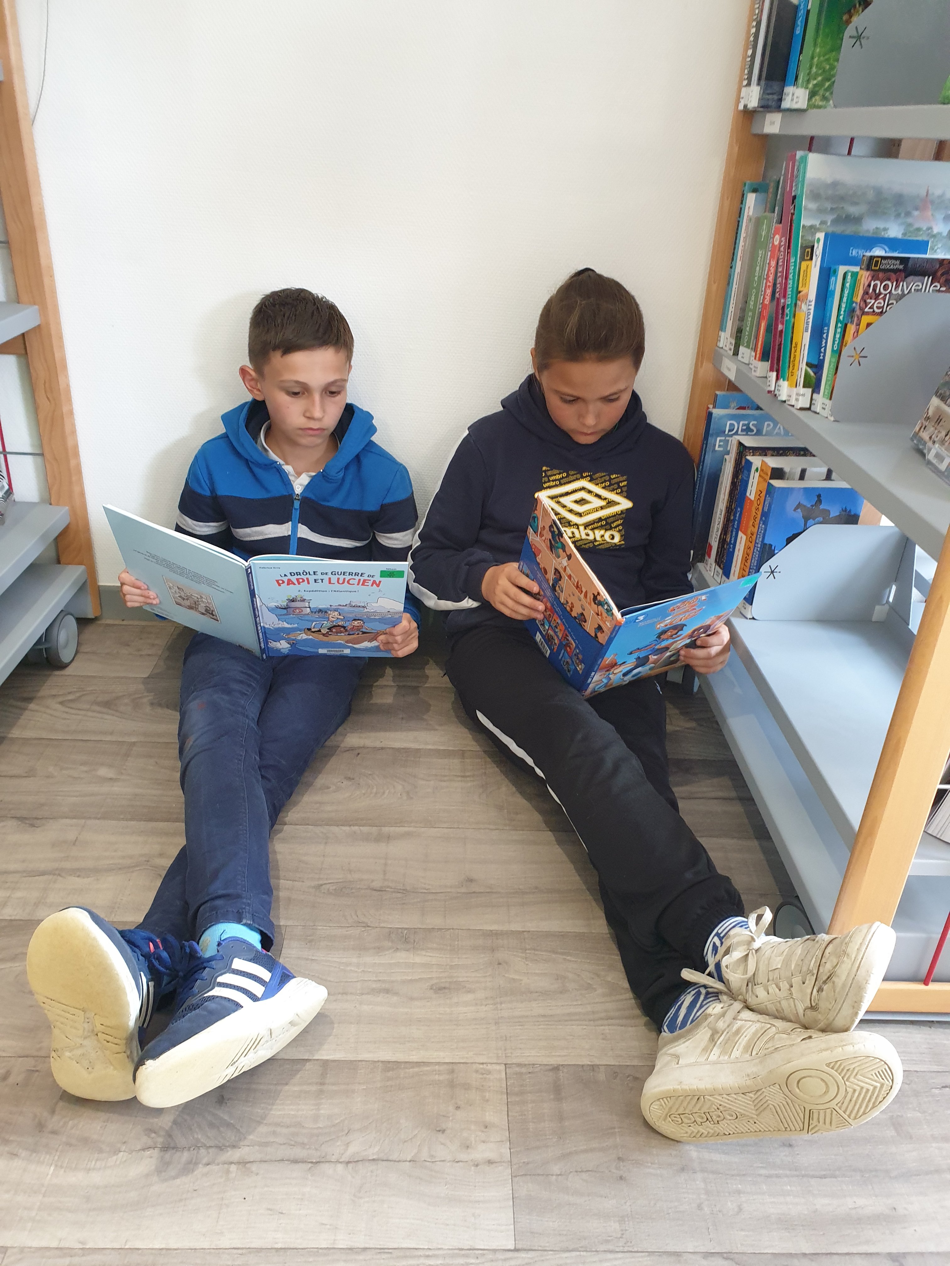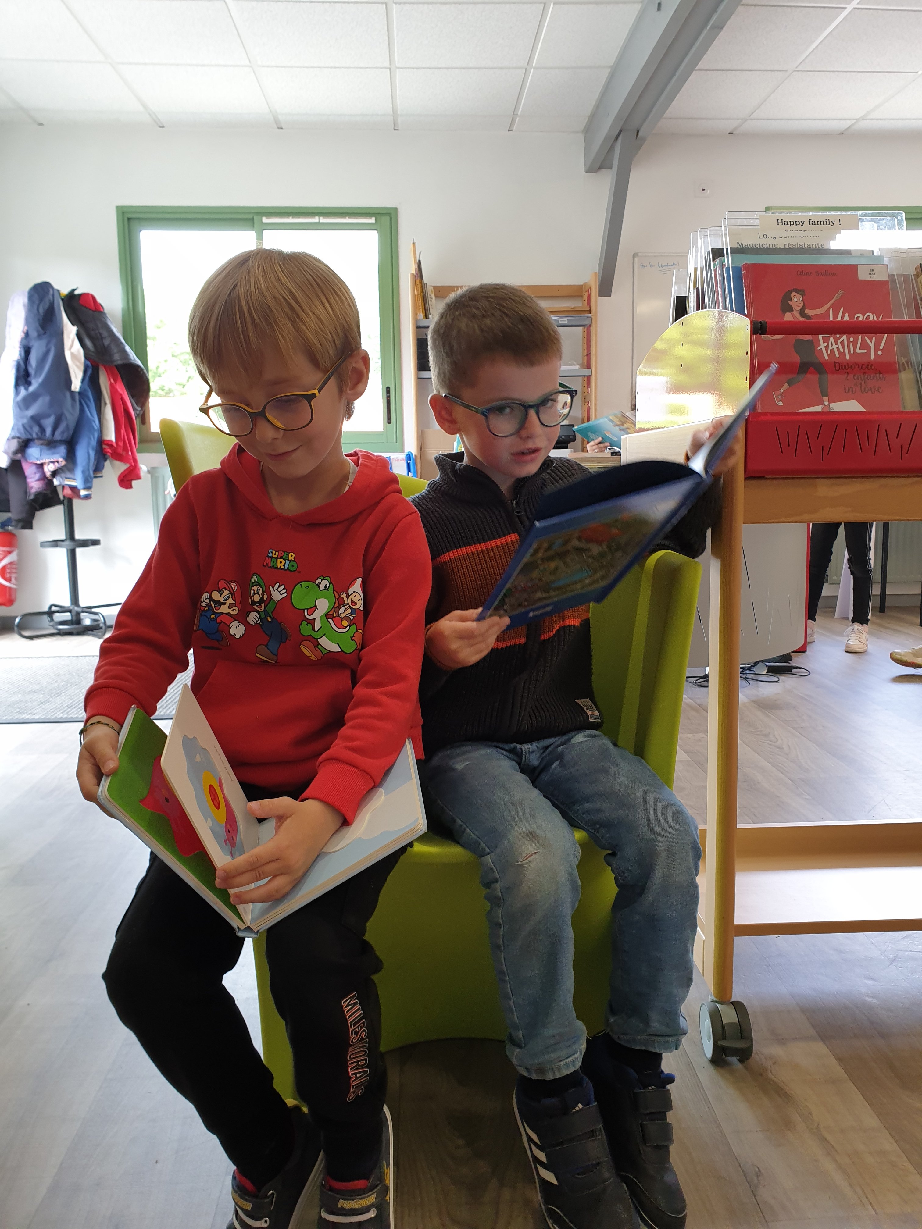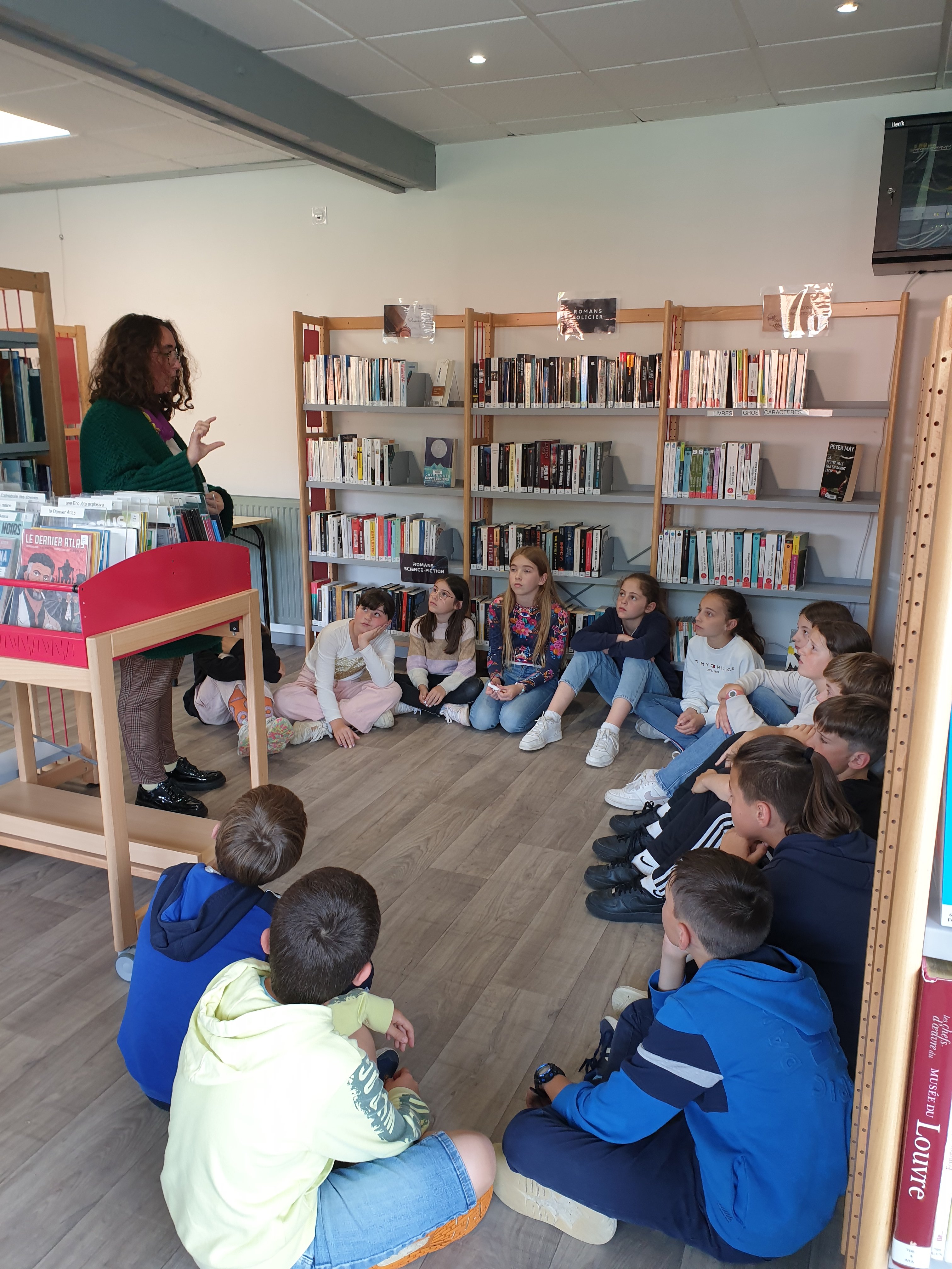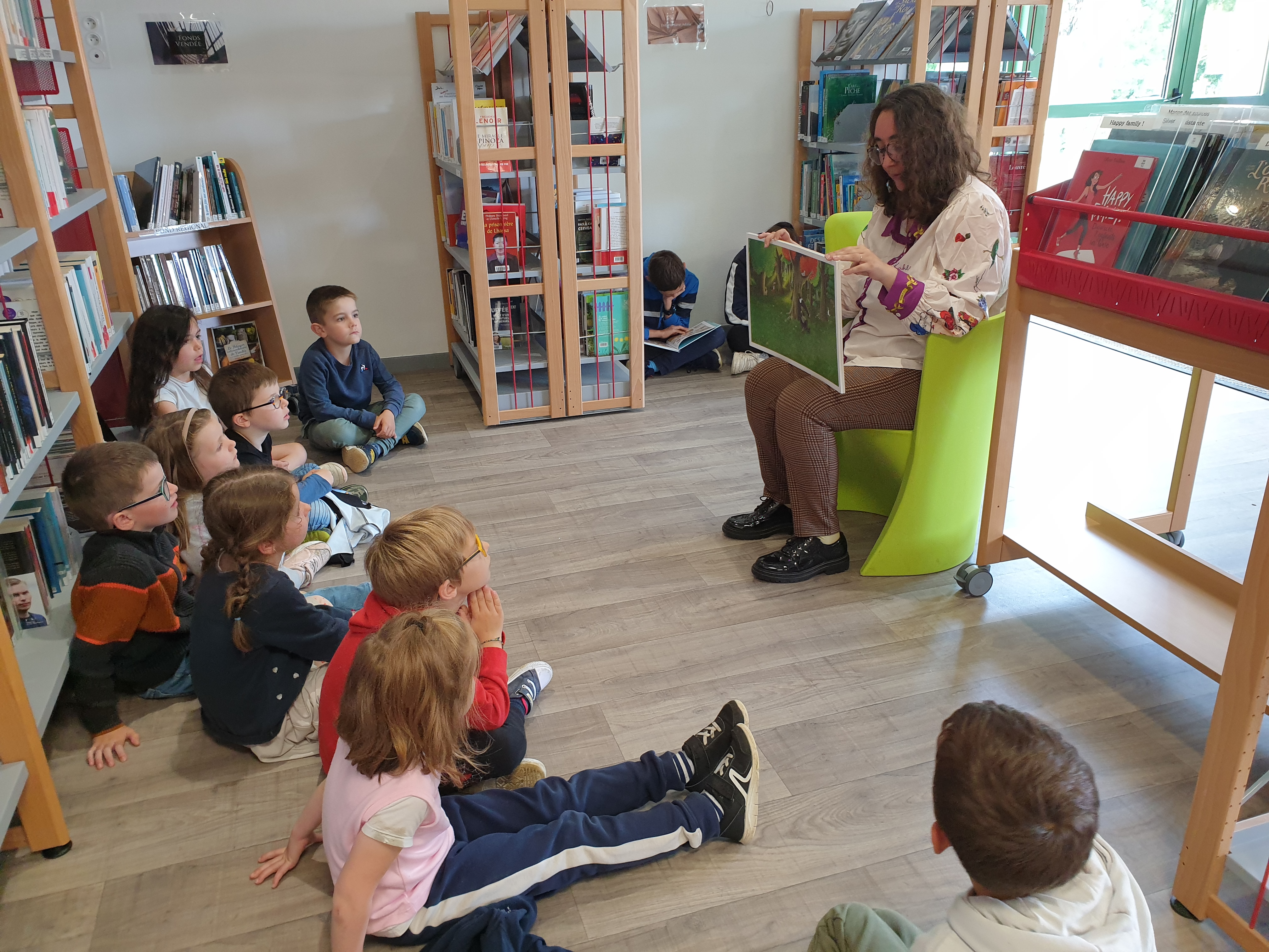Un grand merci à Manon Parveau et aux bénévoles qui nous ont accueillis tout au long de l’année. Pour cette dernière séance, les GS ont eu droit à une lecture d’histoire en kamishibaï, et les CM2 à un enquête à faire dans la médiathèque pour résoudre un message mystère.
