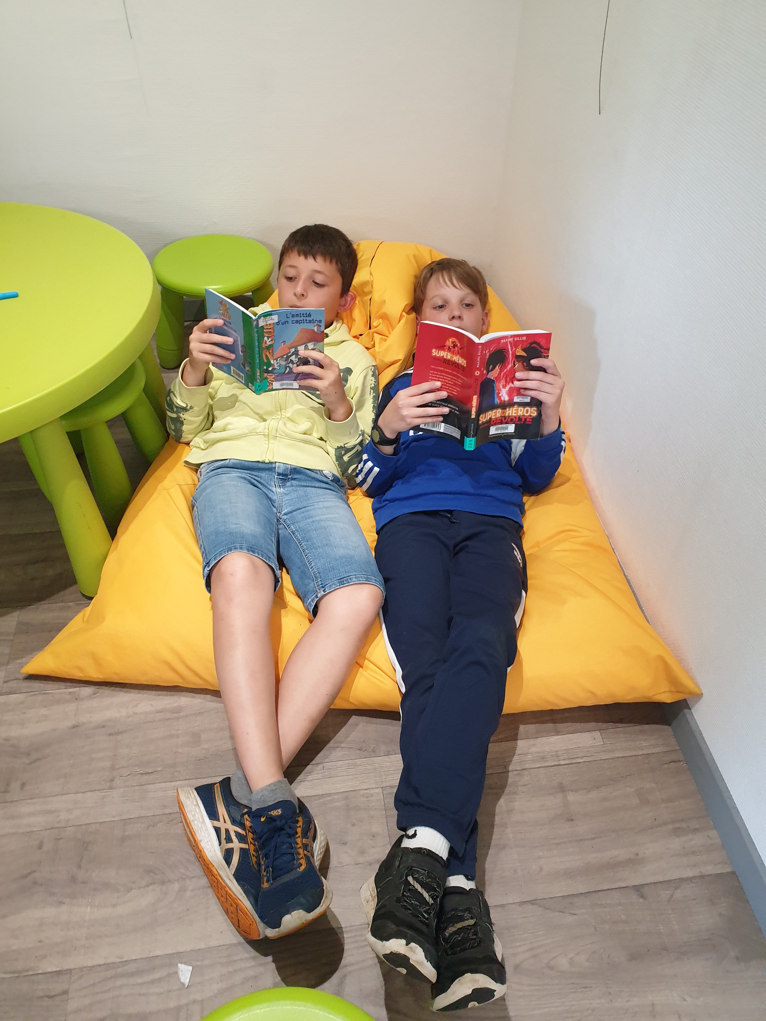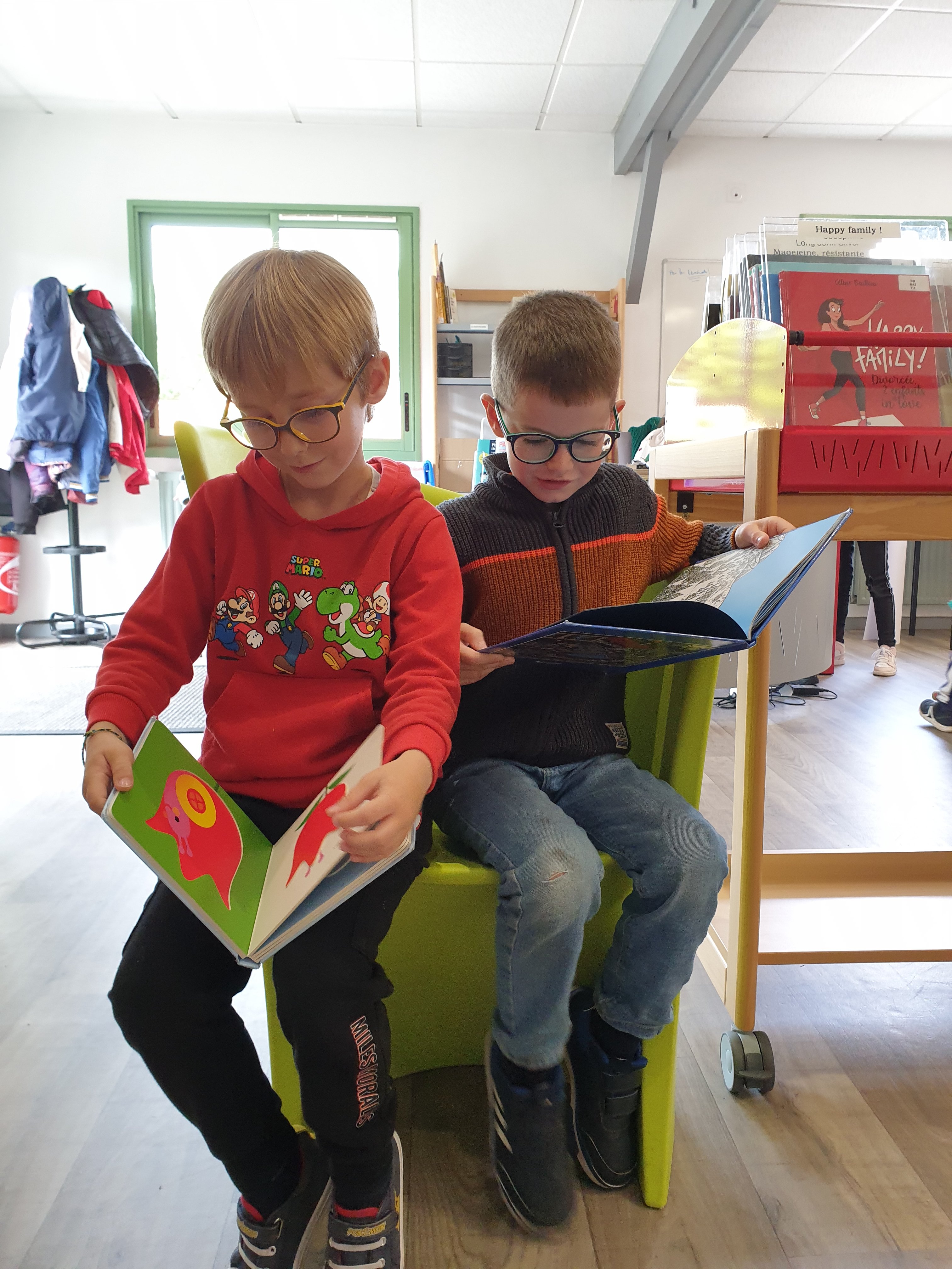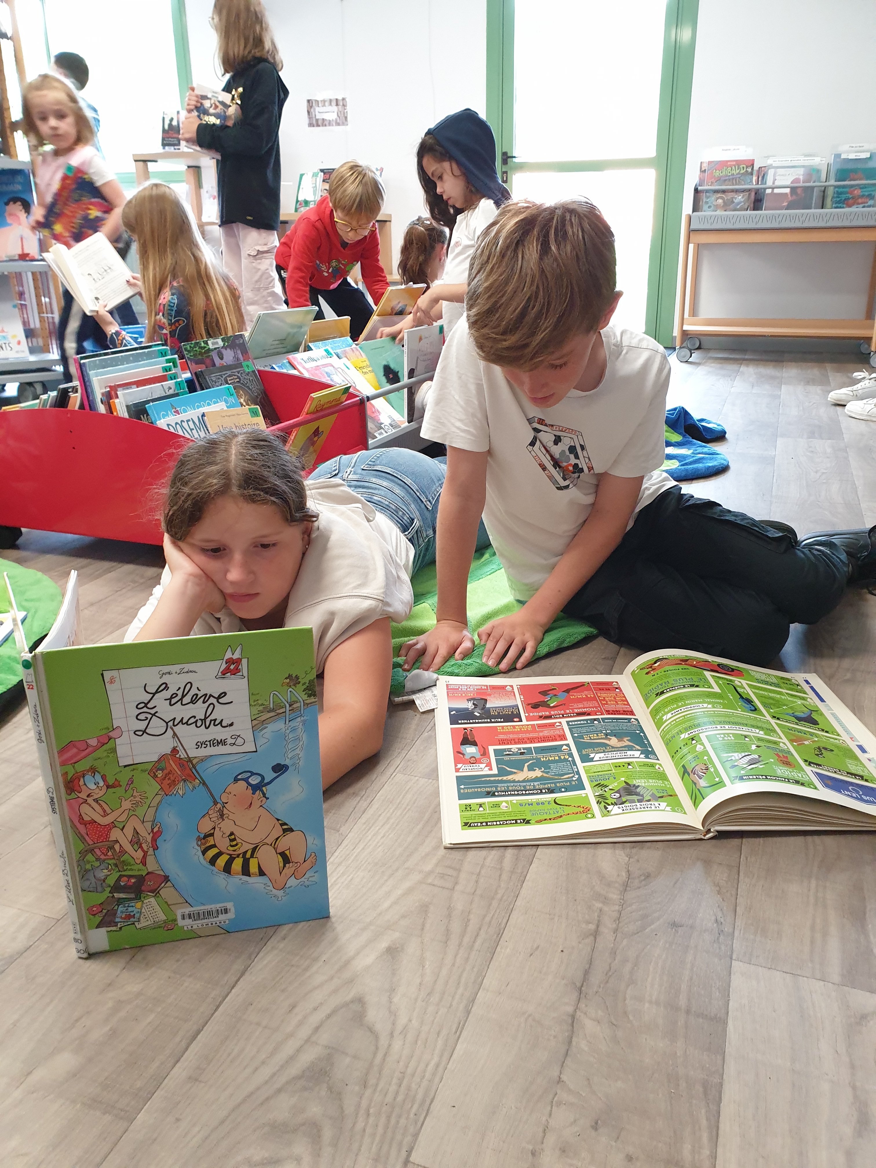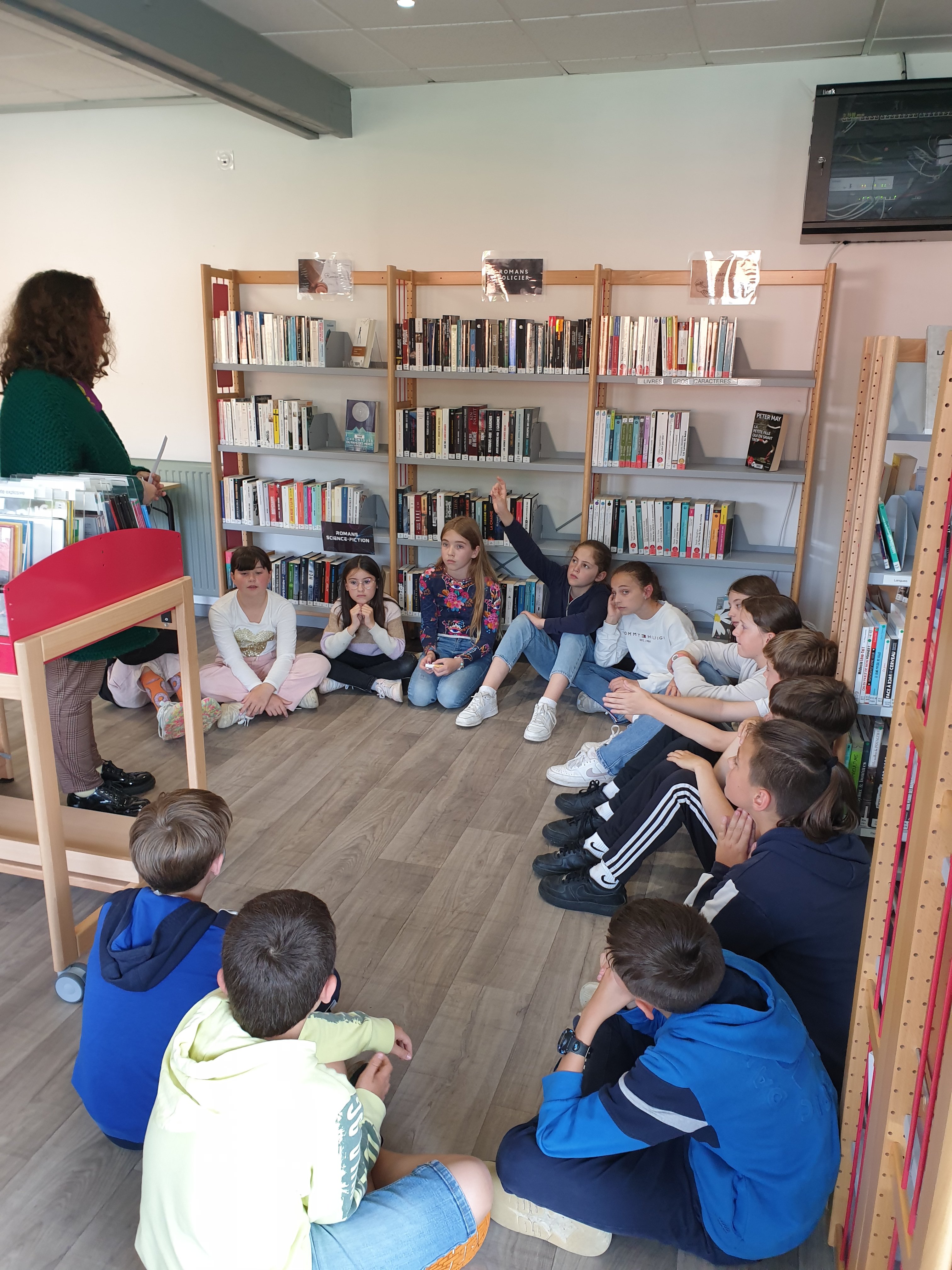 Un grand merci à Manon Parveau et aux bénévoles qui nous ont accueillis tout au long de l’année. Pour cette dernière séance, les GS ont eu droit à une lecture d’histoire en kamishibaï, et les CM2 à un enquête à faire dans la médiathèque pour résoudre un message mystère.