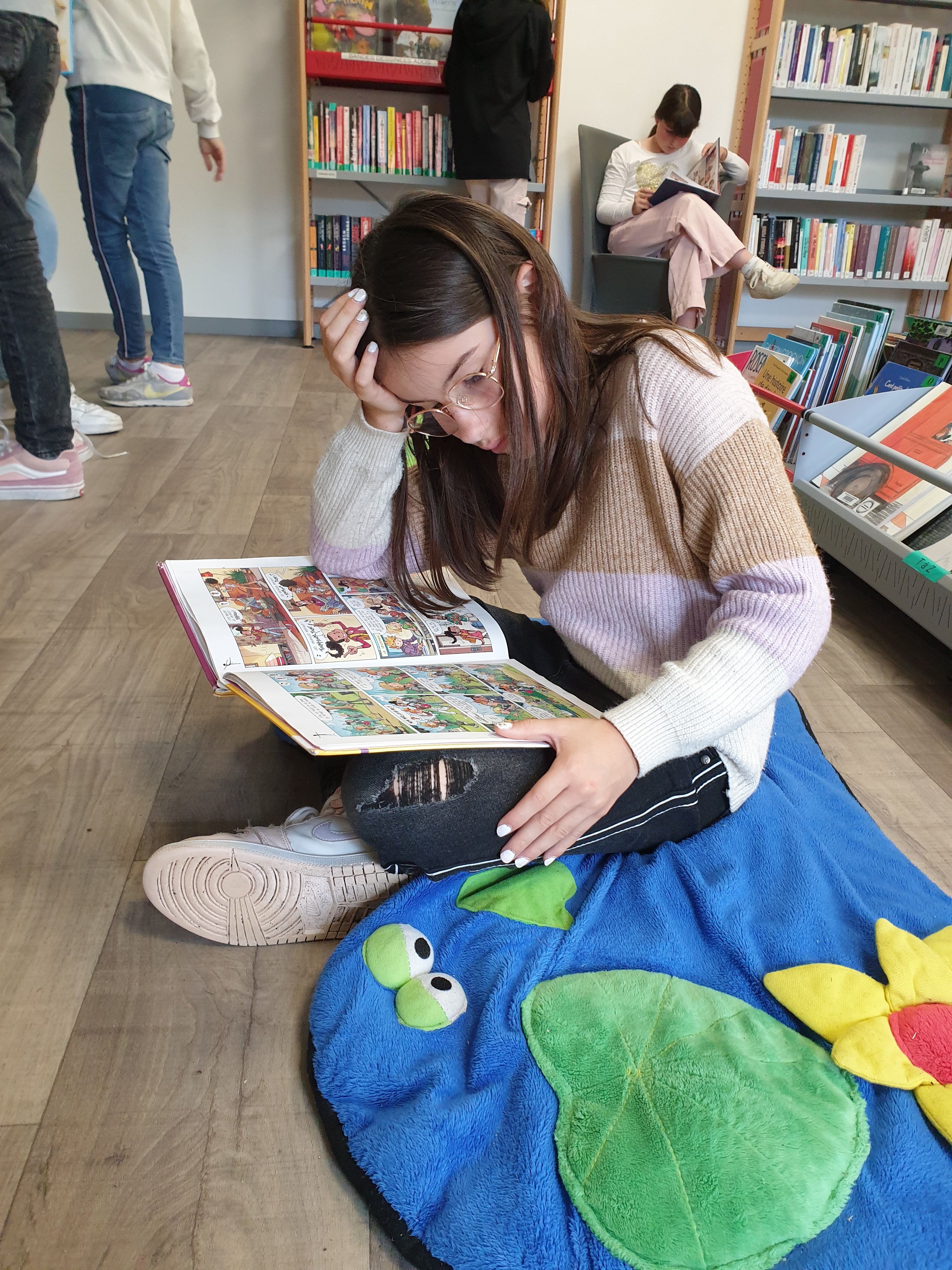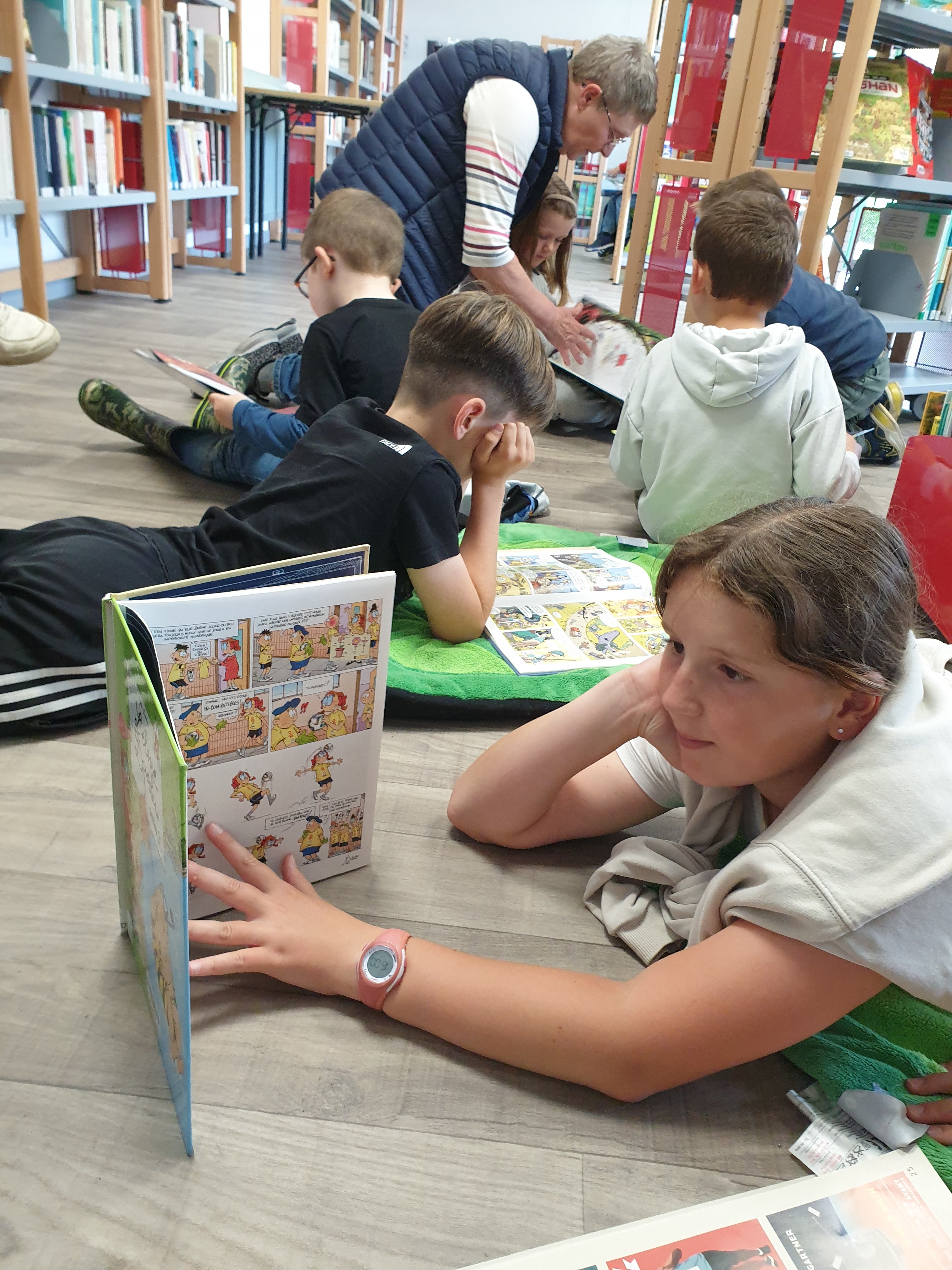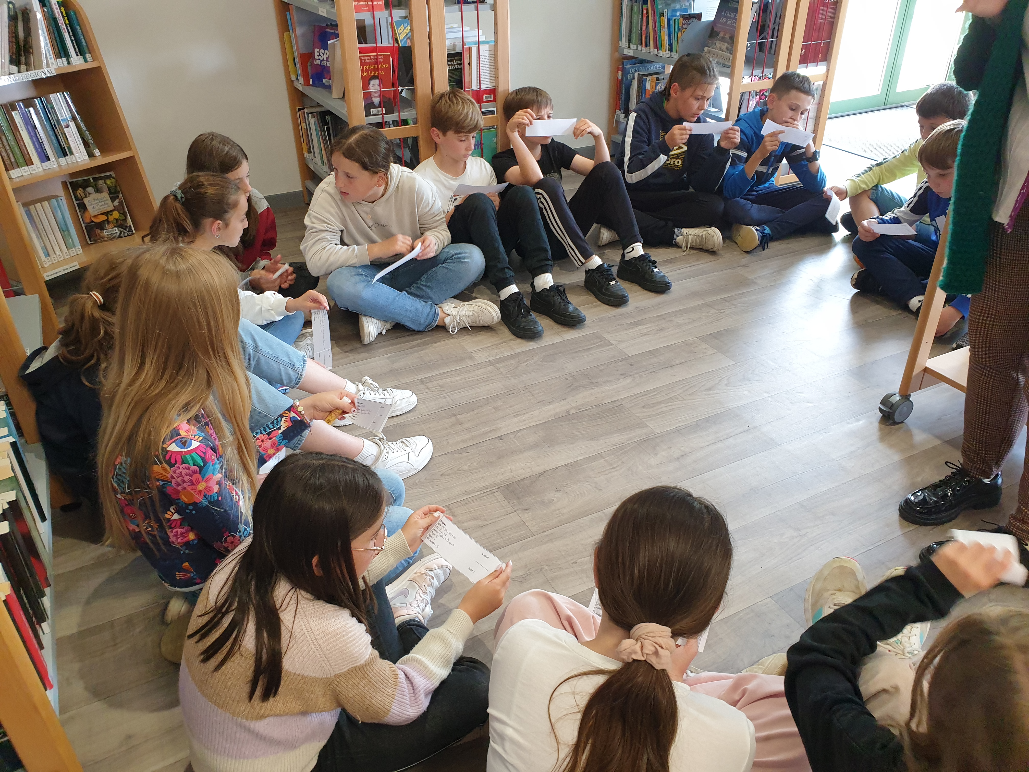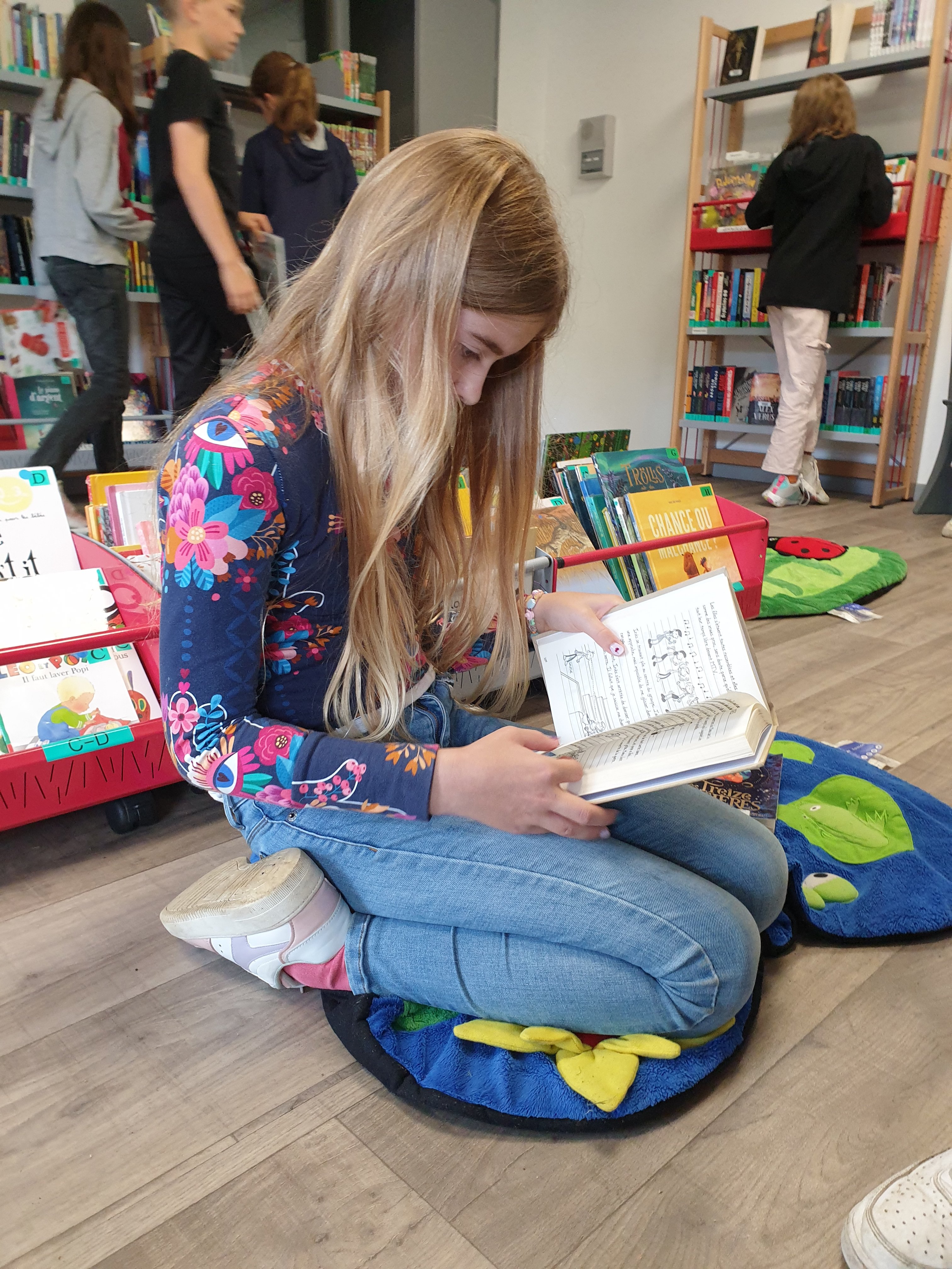 Un grand merci à Manon Parveau et aux bénévoles qui nous ont accueillis tout au long de l’année. Pour cette dernière séance, les GS ont eu droit à une lecture d’histoire en kamishibaï, et les CM2 à un enquête à faire dans la médiathèque pour résoudre un message mystère.