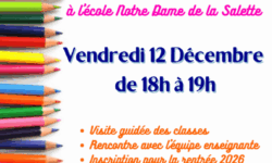 A diffuser largement Les portes ouvertes d’inscriptions auront lieu le vendredi 12 décembre à 18h. Elle concerne principalement les parents d’enfants nés en 2023 qui seront en âge d’entrer en PS à la rentrée 2026-2027, mais il est aussi possible de faire une pré-inscription pour les enfants nés en 2024.…